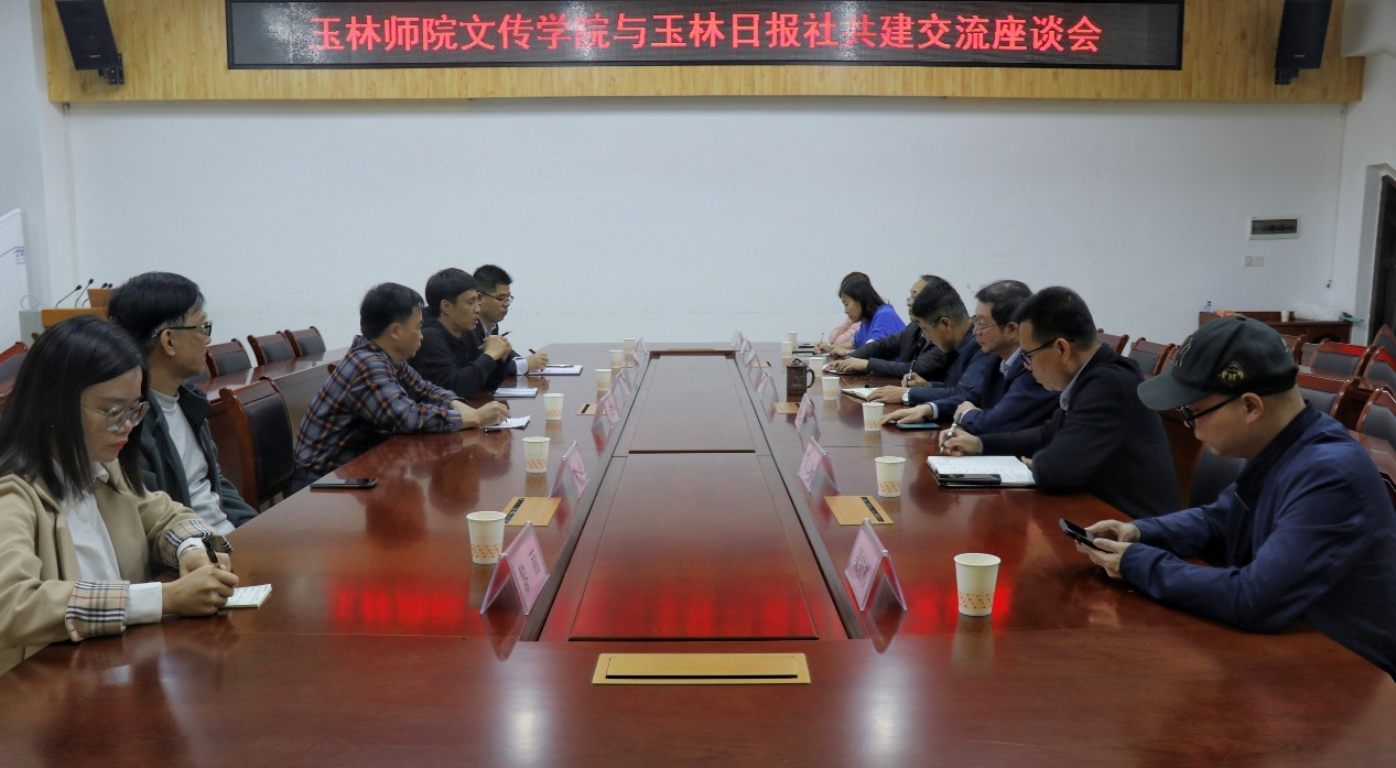 本站讯 3月3日下午,玉林日报社社长、总编辑林茂生,采访中心主任陈旭庆,玉林晚报副总编辑钟原等一行人到BWIN必赢进行交流,并于BWIN必赢东区至善楼309会议室举行座谈,学校党委常委、宣传部部长徐一周,BWIN必赢院长肖国栋,副院长郑立峰,传媒系主任张文锋及传媒系教师参加。
