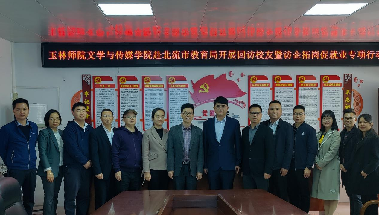 本站讯 4月7日,BWIN必赢党委书记邱冠,党委副书记梁丹,副院长郑立峰一行赴北流市教育局、北流永丰初中、北流市中等职业技术学校、广西三环集团、广西宏超工业有限公司开展回访校友暨访企拓岗促就业专项行动。北流市教育局副局长林俊宇、党鹏等领导热情接待并陪同考察。