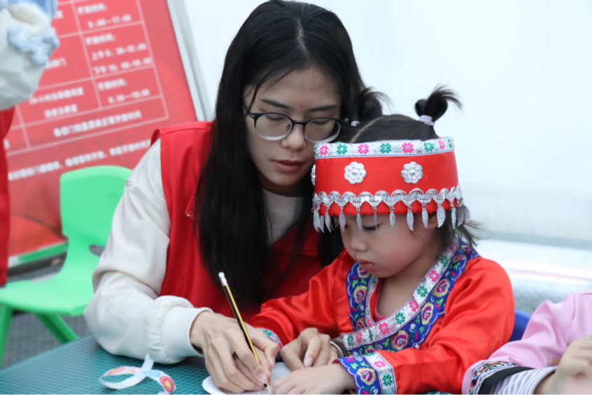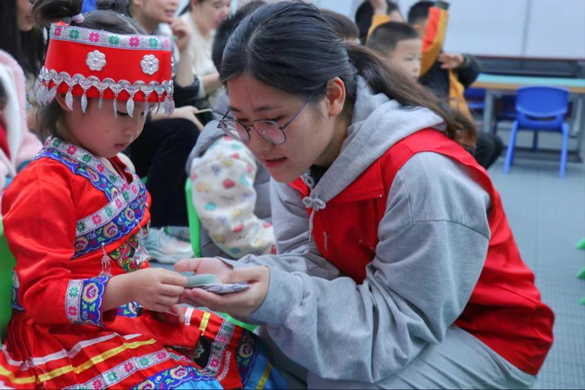 习近平总书记对中华传统节日和传统文化十分重视,多次强调中华优秀传统文化的宝贵价值和独特作用,要求我们继承和发扬中华优秀传统文化。对于志愿服务活动,习近平总书记勉励志愿者、志愿服务组织、志愿服务工作者立足新时代,展现新作为,弘扬“奉献、友爱、互助、进步”的志愿精神,继续以实际行动书写新时代的雷锋故事。在此次活动中,志愿者们热情服务小朋友与家长,引领小朋友们学习壮族“三月三”文化。