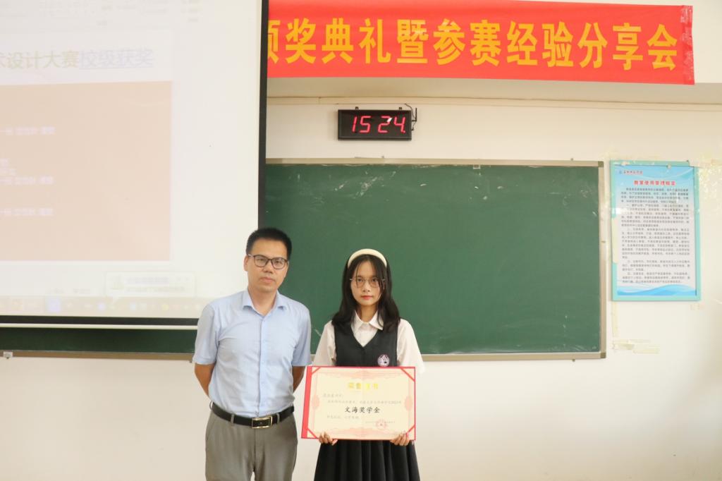 仪式正式开始。首先,由郑立峰宣布文海奖学金的获奖名单,他希望获奖的同学再接再厉,以实际行动争取更好的成绩,同时也希望全体同学以获奖的同学为榜样,争当先锋不断提高自己的综合素质,努力成为德智体美劳全面发展的优秀大学生。郑立峰为获奖学生颁奖并合影留念。