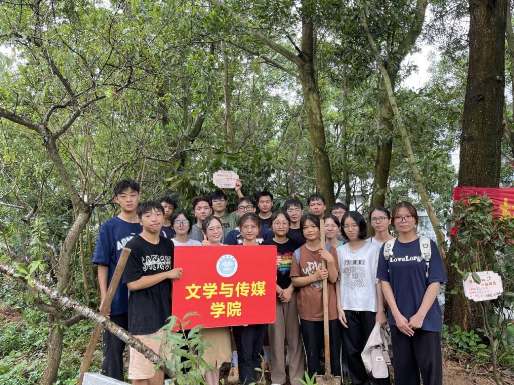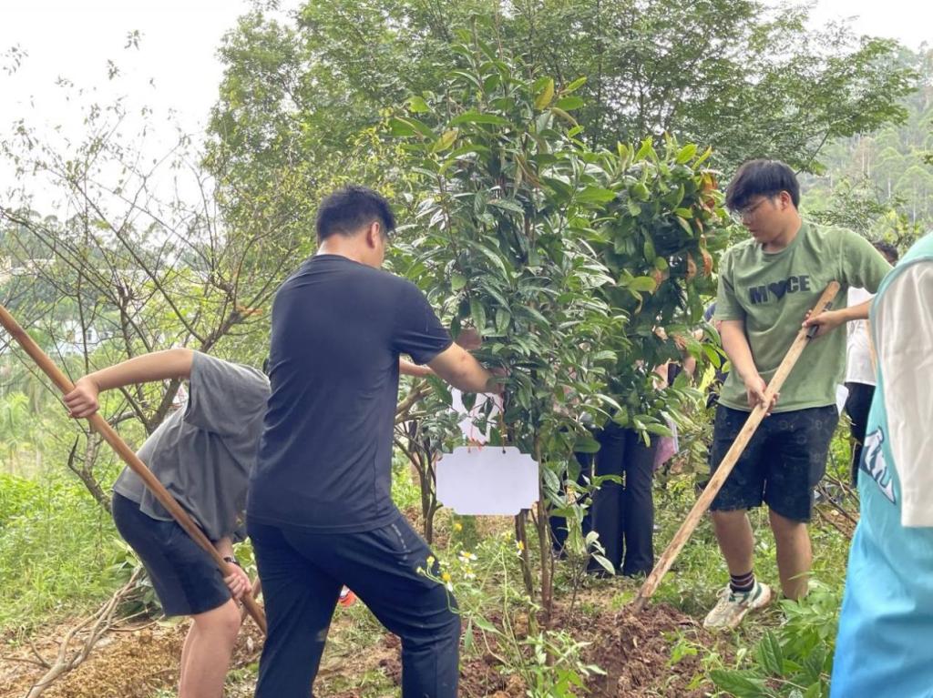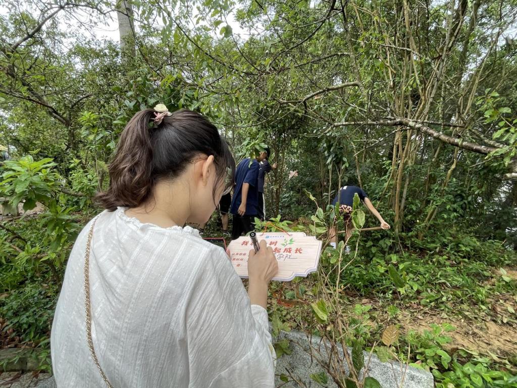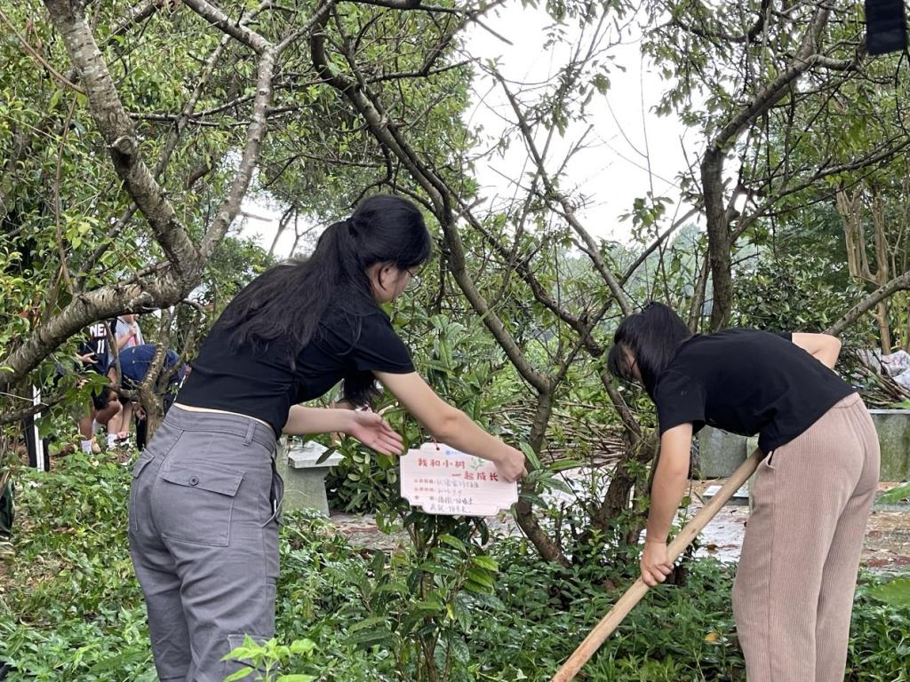 经过师生间的分工合作,一棵棵树苗稳稳地扎根在土里,为桃花林更增一抹新生的绿意。最后学生们为自己亲手栽种的小树苗挂上写有寄语的认养树牌,并与小树苗合影留作纪念。学生们纷纷表示,很荣幸能参加此次活动。这不仅为学校的环境美化工作贡献一份自己的力量,也让他们认识到学生就像是正在生长的树苗,需要悉心地呵护才能茁壮成长,希望未来能做好老师这个职业,呵护学生成长。