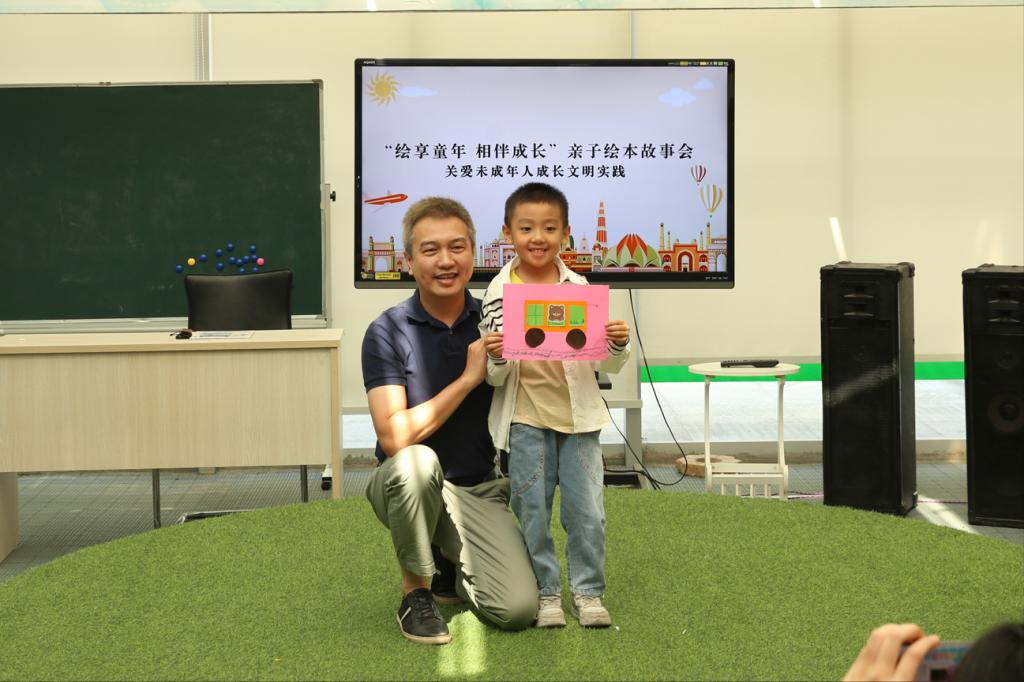 接着,小读者们手拿手工制作的公交车与在场的志愿者及图书馆工作人员合影留念。本次亲子绘本活动,不仅传授了小读者们坐公交车的注意事项,还能激发小读者们的阅读兴趣。