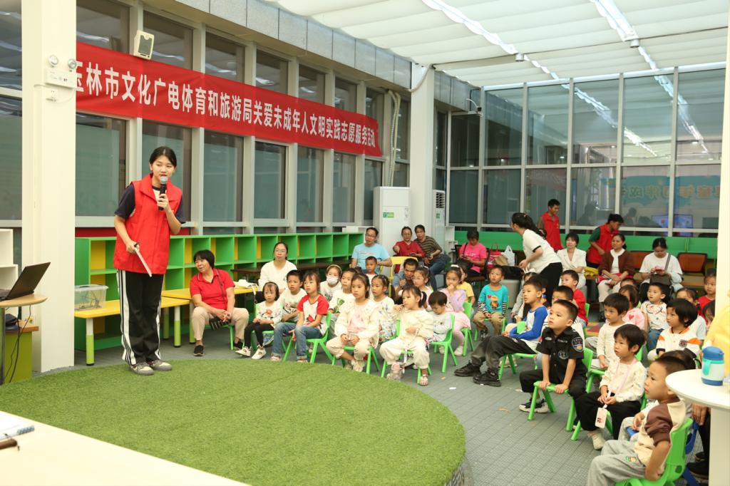 本站讯 为激发儿童阅读兴趣,培养儿童安全乘车的意识,10月28日上午,BWIN必赢联合玉林市图书馆、玉林市文化广电体育和旅游局一同开展关爱未成年人文明实践志愿服务活动,在玉林市图书馆一楼阅读分享空间举办“绘享童年,相伴成长”亲子绘本故事会。BWIN必赢学生志愿者、图书馆工作人员、玉林市文化广电体育和旅游局志愿者和30余名儿童读者及其家长共同参与本次活动。