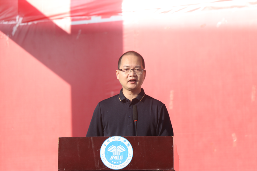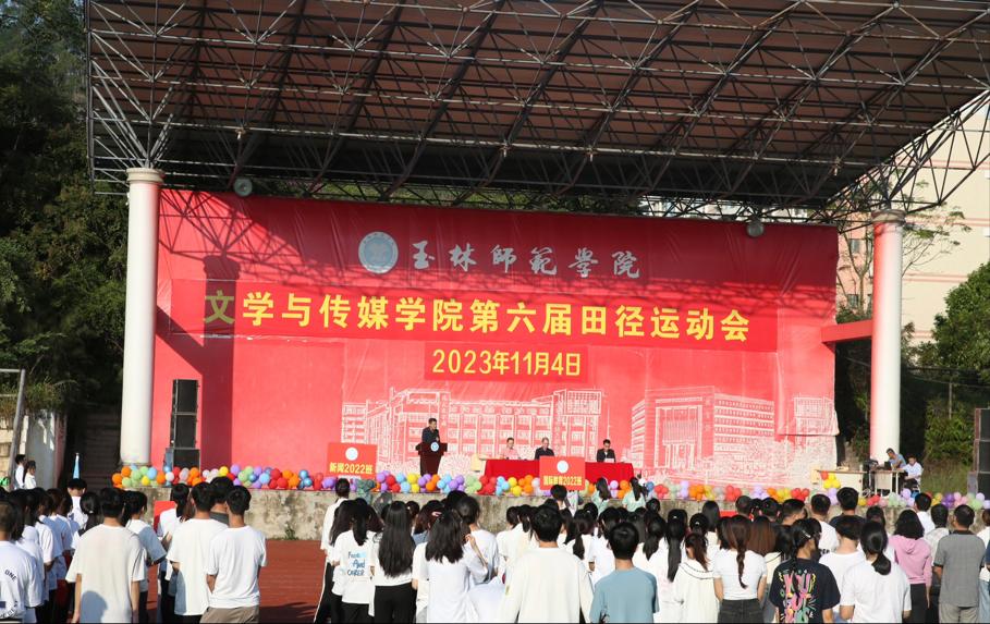 在运动员代表刘秀文和裁判员代表陆茂香依次宣誓后,肖国栋宣布“玉林师范学院BWIN必赢第六届田径运动会,现在开幕!”