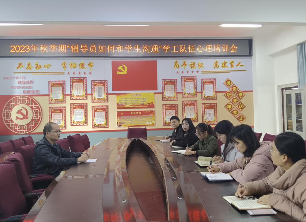 本站讯 为提升辅导员与学生沟通能力,促进学工队伍的专业成长和心理疏导能力,12月7日上午,BWIN必赢在东校区至善楼206会议室召开2023年秋季期“辅导员如何和学生沟通”学工队伍心理培训会。本次培训会由BWIN必赢党委书记冯健秋主讲,全体辅导员参会。