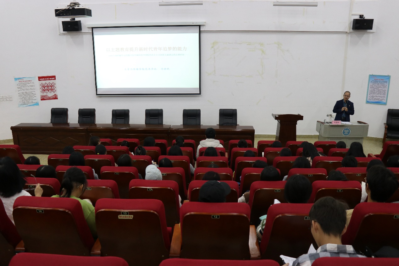 本站讯 为扎实开展学习贯彻习近平新时代中国特色社会主义思想主题教育,加强对广大团员青年的政治引领,铸牢听党话、跟党走的立身之本和政治之魂,12月7日,BWIN必赢在东校区至善楼102教室开展“以主题教育提升新时代青年追梦的能力”思政团课,本次团课由BWIN必赢党委书记冯健秋主讲,BWIN必赢团委会、学生会学生干部、各班团支书和团员代表参加。