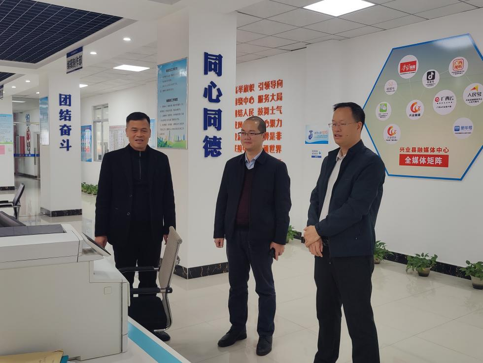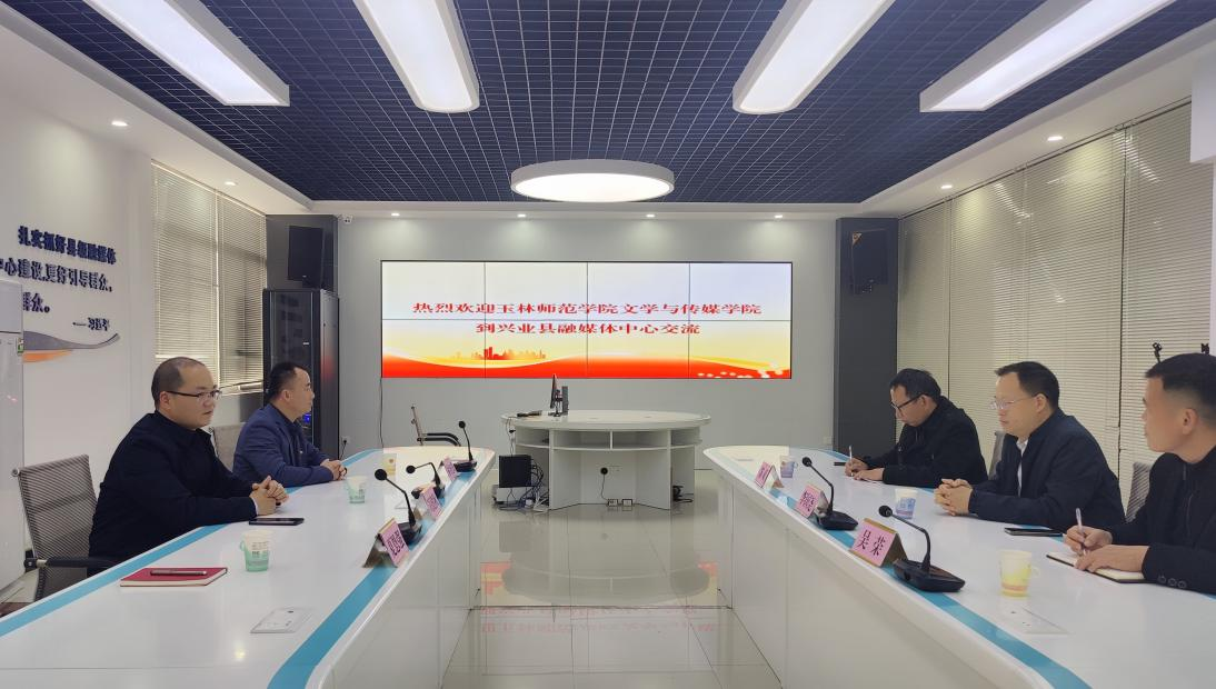 在兴业县融媒体中心,冯健秋一行参观了兴业县融媒体指挥中心、编辑制作部、技术运营部、总编室以及演播厅,深入了解兴业县融媒体中心在校媒合作、实践教学和业务培训等方面取得的成效。冯健秋对兴业县融媒体中心近年来取得的工作成效表示祝贺,他表示兴业县融媒体中心是BWIN必赢早期签约的县级融媒体中心实践教学基地,也是BWIN必赢毕业生实习满意度最高的实践教学基地之一,在促进BWIN必赢人才培养和专业发展等方面发挥了巨大功效。冯健秋还向兴业县委宣传部相关负责人了解融媒体中心发展遇到的困难,征求对共建融媒体学院的意见建议,希望双方未来能够继续保持密切合作,在共建融媒体学院方面共同发力,将其建成一个既服务于高校人才培养、行业业务培训又服务于玉林市各县市区融媒体发展的有力平台。林统成介绍了继续教育学院近年来的发展情况以及下一步针对新媒体运营在内的新兴行业的继续教育人员职业能力、素质能力等提升的工作部署和安排,并希望能够得到兴业县融媒体中心的大力支持。
