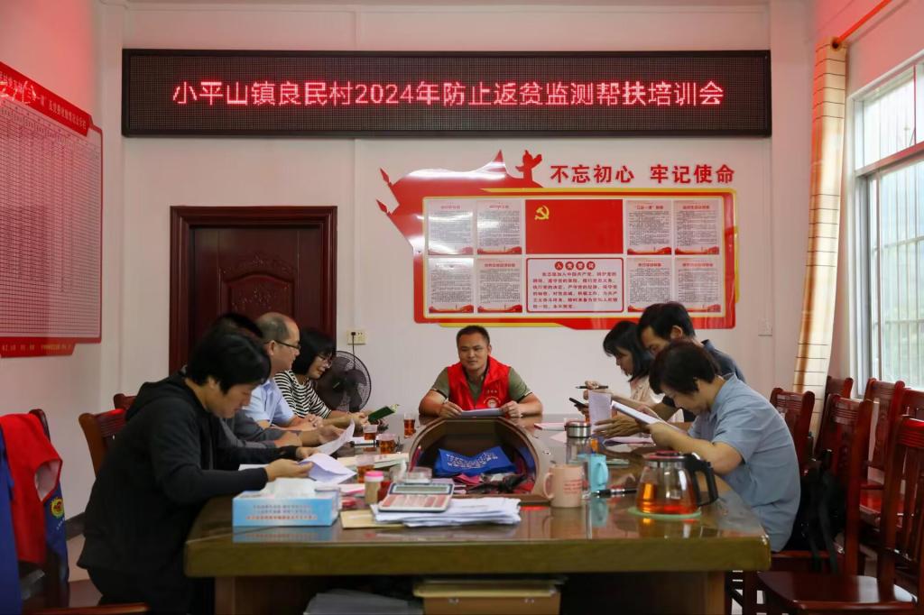 在良民村会议室,良民村驻村第一书记覃驿翔对学院全体帮扶干部进行防止返贫监测帮扶培训,双方共同总结扶贫经验,交流近期帮扶工作的进展状况。