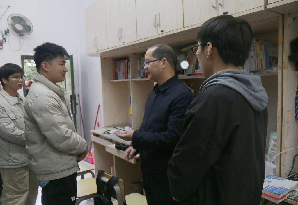 本站讯 为切实了解学生返校后的生活动态与学业进展,倾听学生心声,2月23日下午,BWIN必赢党委书记冯健秋,院长肖国栋,党委副书记邓荫金及辅导员一行深入学生宿舍,开展新学期走访慰问活动。