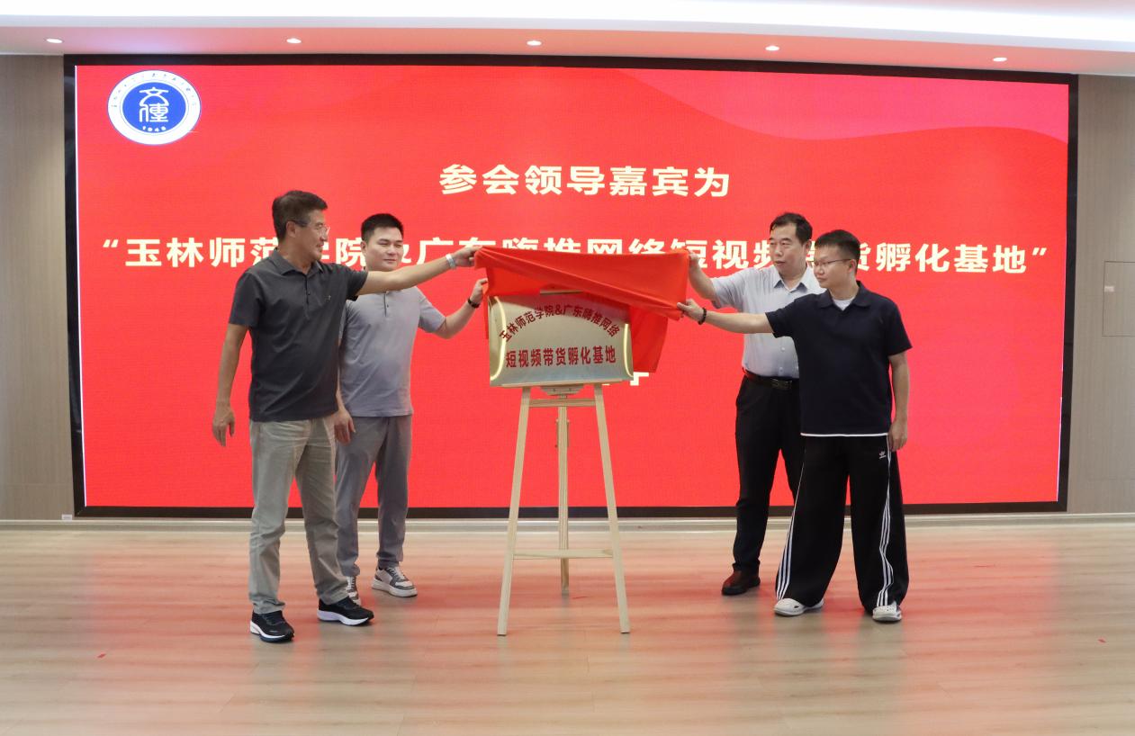本站讯 9月25日下午,学校在崇德楼路演大厅举行校企合作基地揭牌仪式,校长李伟中,广东嗨推网络科技有限公司代表王添章,BWIN必赢负责人出席揭牌仪式,共同为“玉林师范学院&广东嗨推网络短视频带货孵化基地”揭牌。党委常委、宣传部部长徐一周出席仪式并讲话。