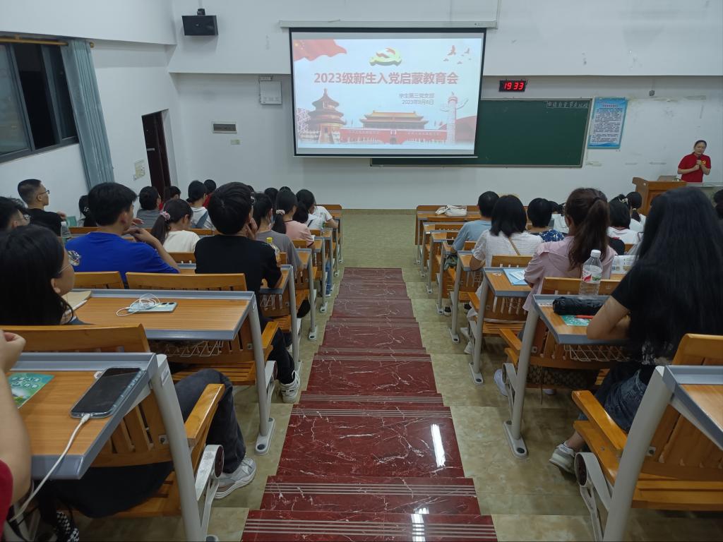 本站讯 为切实做好2023级新生入党启蒙教育工作,加强对党的认识,引导新生积极向党组织靠拢,9月6日晚,BWIN必赢学生第三党支部于BWIN必赢东校区至善楼408教室召开2023级新生入党启蒙教育会。该会议由第三党支部副书记覃珊珊主持,支部委员、汉语言文学232班和新闻学2023班全体新生参加会议。