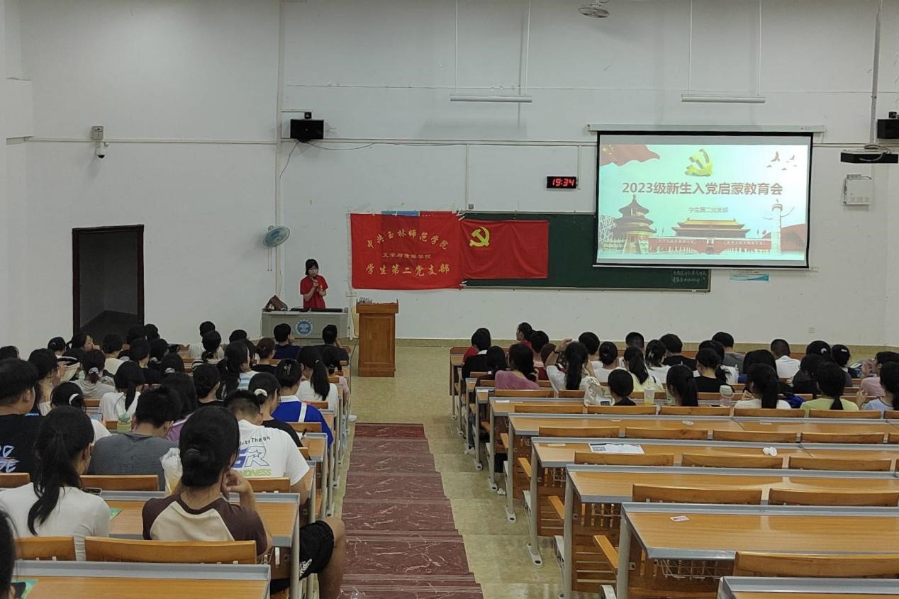 本站讯 9月6日晚,为提高BWIN必赢新生对中国共产党的认识,激发入党积极性,BWIN必赢学生第二党支部于BWIN必赢东校区至善楼101教室召开新生入党启蒙教育会,支部支委,汉语言文学231班和广告学2023班新生参加会议。大会由支部副书记刘泽玲主持。