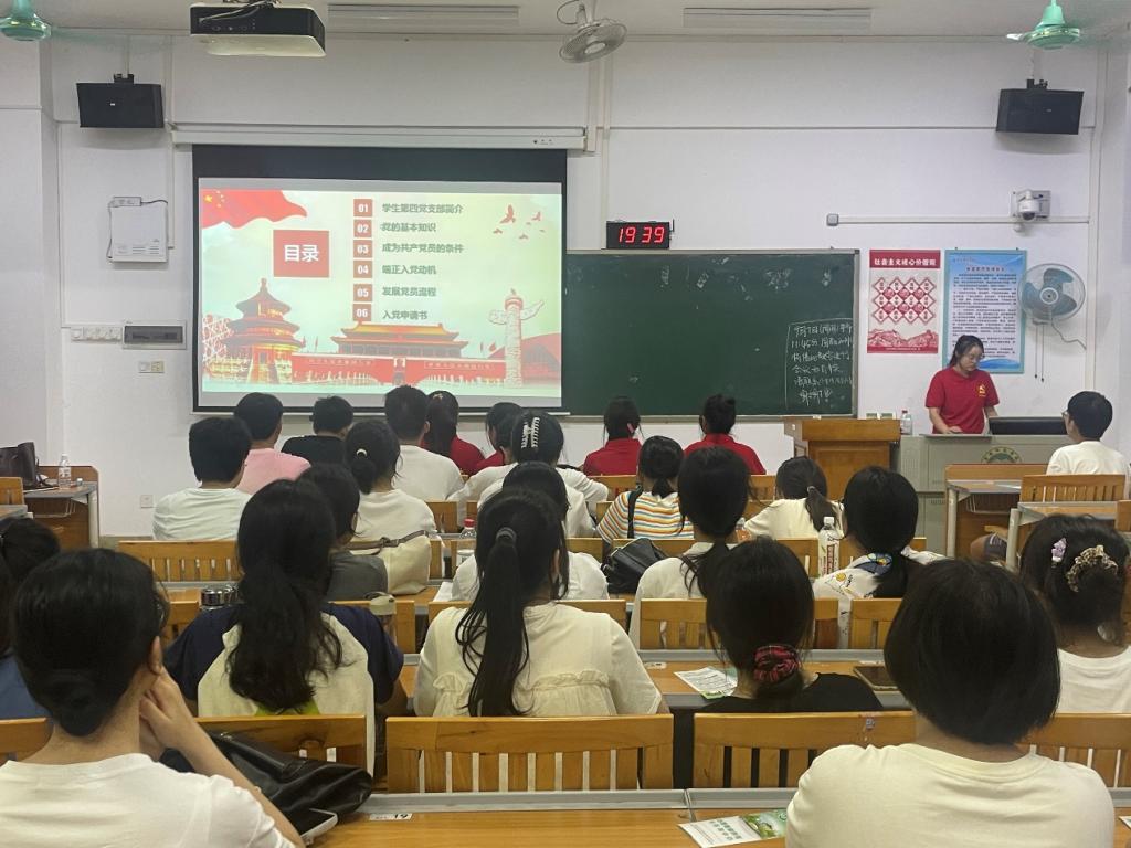 本站讯 为切实做好2023级新生入党启蒙教育工作,引导学生端正入党动机,积极向党组织靠拢。9月6日晚,BWIN必赢学生第四党支部于BWIN必赢东校区至善楼204教室开展2023级新生入党启蒙教育会,本次会议由该支部副书记韦婷主持,汉语言文学234班全体同学参加。