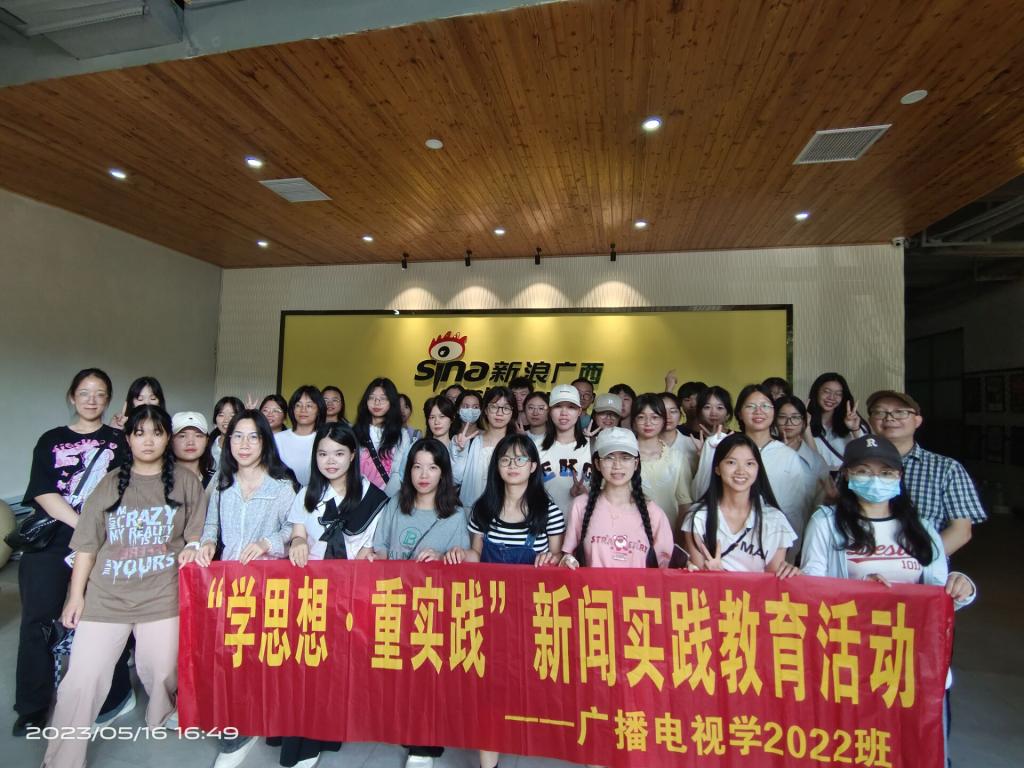 本站讯 为了学习党的二十大精神,增强学生爱党、爱国观念,根据部校共建工作部署和广播电视学专业培养方案要求,5月15日至18日,BWIN必赢广播电视学2022班于南宁市开展一次为期4天的校外专业实践,将课堂上学习的专业知识运用到实际,锻炼学生的摄影、剪辑、新闻采编业务技能。16日,该班组织参观广西新浪信息科技有限公司,该实践周活动由广播电视学教研室主任梁航彬带领,该班全体学生参加。