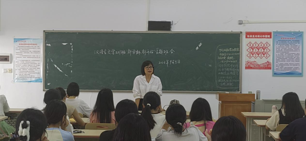 本站讯 新学期,新气象。为营造良好的开学氛围,激发学生学习热情,9月5日上午,BWIN必赢汉语言文学221班于BWIN必赢东校区至善楼403教室召开“新学期、新开始”主题班会。本次班会由团支书唐昌友主持,班主任梁芳和班级全体学生参加。