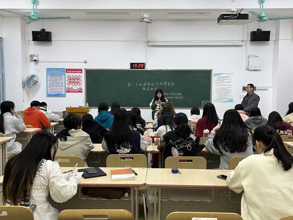 本站讯 为确保校运动会的顺利进行,提高学生的安全意识,11月14日晚,BWIN必赢汉语言文学212班在东校区至善楼501教室召开第二十四届校运会纪律安全教育班会。此次会议由该班班长蓝思瑶主持,班主任张学军和该班全体学生参加。