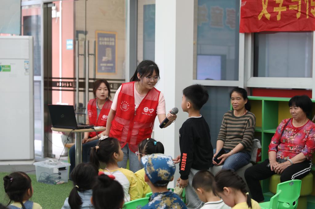 绘本故事讲解结束后,志愿者们与小朋友们一起了解了清明节放风筝、挂纸、吃青团等传统习俗,现场气氛活跃,小朋友们纷纷举手分享他们在清明节参加的活动。