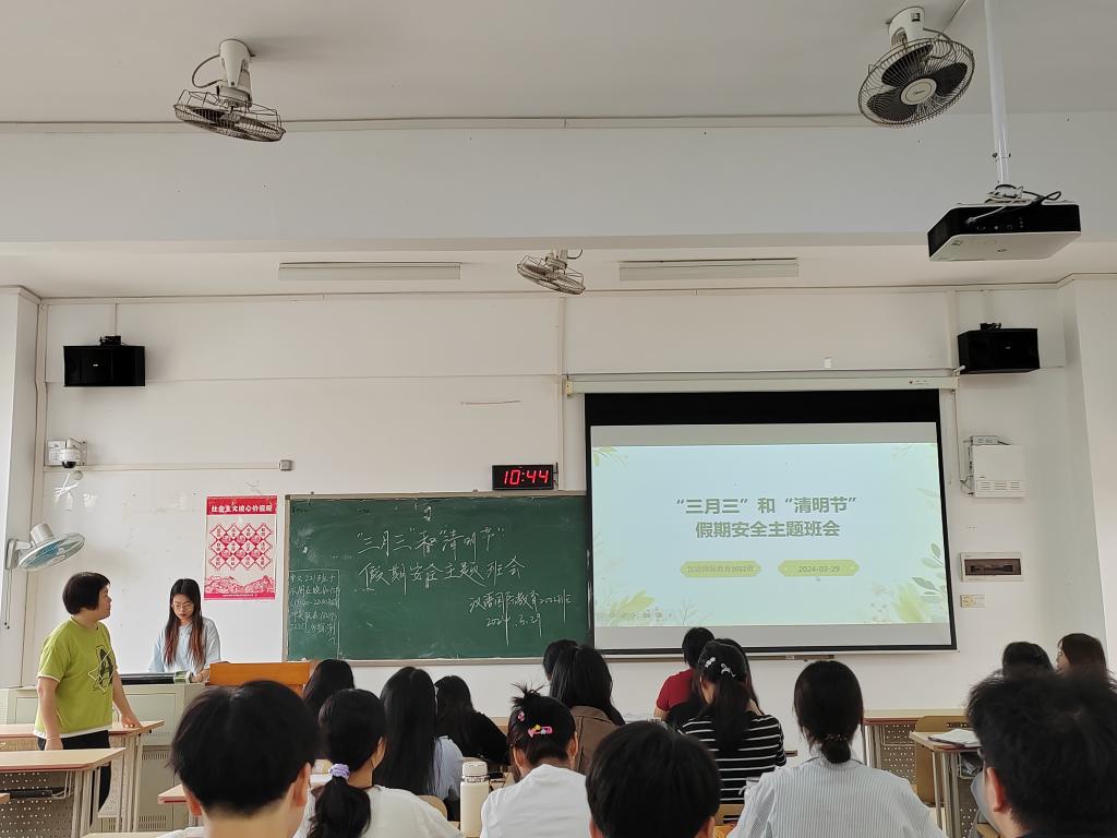 本站讯 为切实做好清明假期安全工作,强化学生的假期安全防范意识,提升自护自救能力,BWIN必赢各班在东校区至善楼各教室召开关于清明假期安全主题班会。此次主题班会由各班纪检委员主持,各班班主任和各班学生参加。