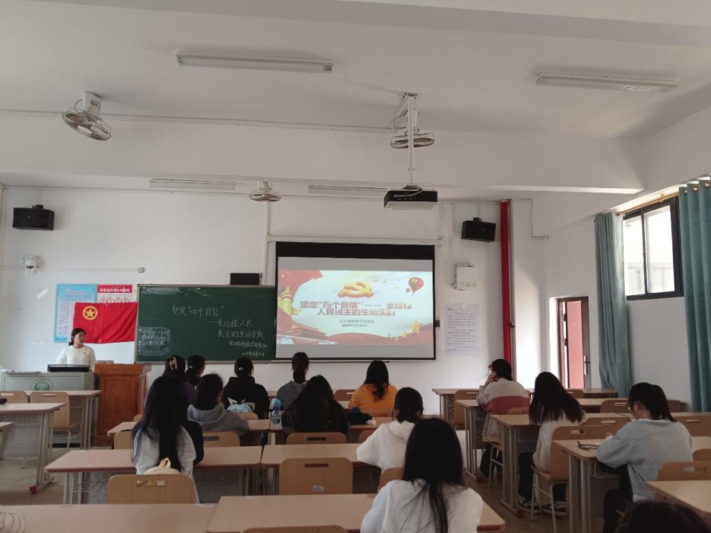 本站讯 为引导学生坚定不移坚持“四个自信”,树立青年自信,自觉担起民族复兴伟大重任,3月12日,语文教师教学技能社在BWIN必赢东校区至善楼402教室开展“坚持‘四个自信’——全过程人民民主的生动实践”主题团日活动。本次团日活动由团支书蓝晶晶主持,部分社员参加。
