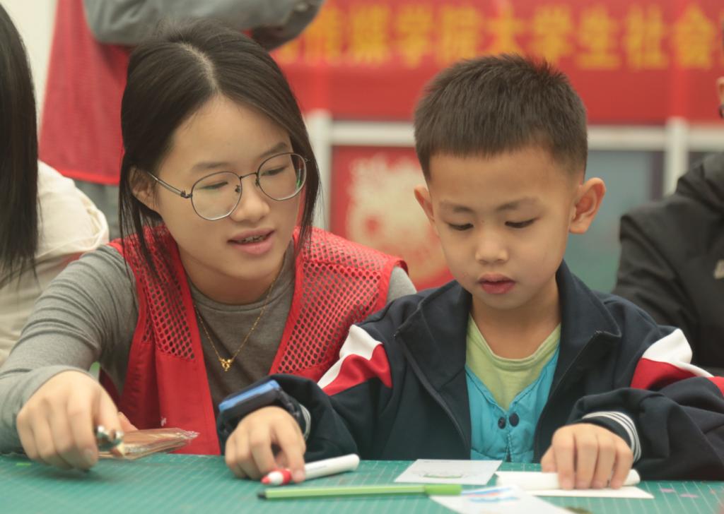手工制作环节,小朋友们在家长和志愿者的协助下,充分发挥自己的想象力,用彩笔为雷锋主题书签填色。