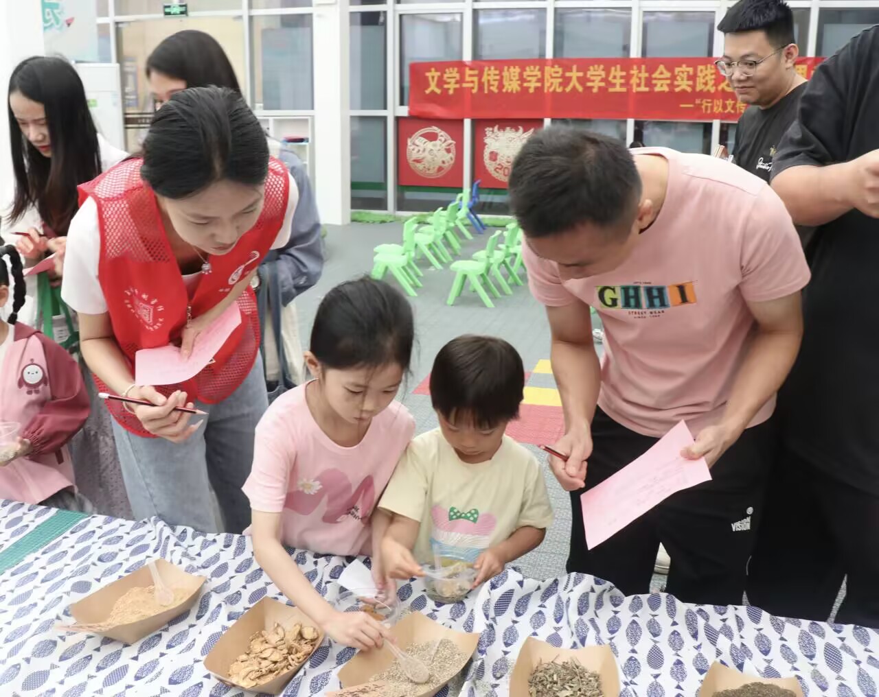 手工制作环节,小朋友们在家长的贴心陪伴与志愿者的耐心协助下,利用各种药材粉末制作香囊,一个个香囊制作成功,小朋友们在药材香中了解和传承中华优秀传统文化。
