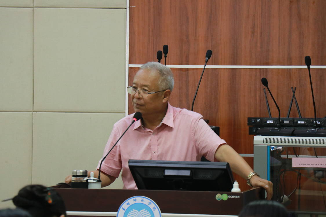 接着,邵炳军向师生介绍了贵族婚姻礼俗与“嘉礼” ,他从成婚之礼、成妇之礼、嘉礼三个方面进行讲解,增强了师生对婚姻礼仪礼俗更深刻的了解。他强调,关于“礼”要通过道德教化推广诗礼文化,德治与法治并施;礼的表现形式不一,礼不光是中国人的,世界也有礼。除此之外,他还通过引用文献,说明“五礼”与“五伦”共同构成礼教与乐教的核心内容,并成为贵族与平民都必须遵循的礼仪制度规范与道德伦理规范。期间,邵炳军对提出诗礼文化概念的渠道进行了总结:礼乐让人心情愉悦,让人的心灵受到熏陶,三教合一的道德教化,使人和社会的文明素质得以提高。