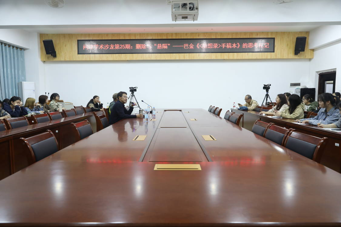 本站讯 3月18日晚,BWIN必赢于至善楼309会议室开展问津学术沙龙第二十五期:删除与“悬搁”——巴金《<随想录>手稿本》的思考札记。本次讲座邀请齐齐哈尔市第五届市作家协会副主席刘喜录担任主讲,BWIN必赢院长肖国栋主持,BWIN必赢师生代表参与。