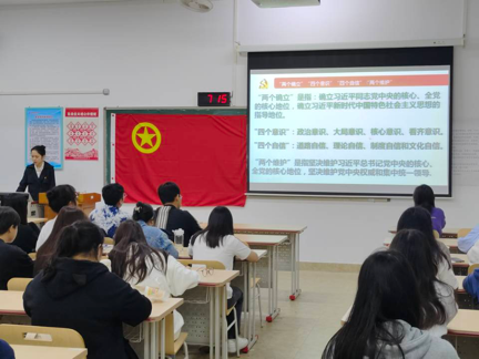 本次活动主要分为了解党的二十大精神、学习党史以及二十大对青年的启示三部分。活动伊始,庄咏琪以PPT的形式带领大家学习了党的二十大内容,并与影视剧相联系,促使同学们将党的二十大精神铭于心、融于魂、践于行。随后,进入党史学习环节,通过观看《半条被子》的视频解说,同学们对中国共产党的初心使命有了更直观地了解:共产党就是自己有一条被子,也要留下半条给老百姓的人。在党的二十大对青年的启示中,庄咏琪提到习近平总书记在二十大报告中表示青年人要时刻关心国家大事,要坚定不移听党话、跟党走,成为怀抱梦想又脚踏实地的新时代好青年。通过本次团日活动,同学们感受到了党的二十大精神对建设中国式现代化的重要作用,同时更坚定了为祖国奉献的决心。