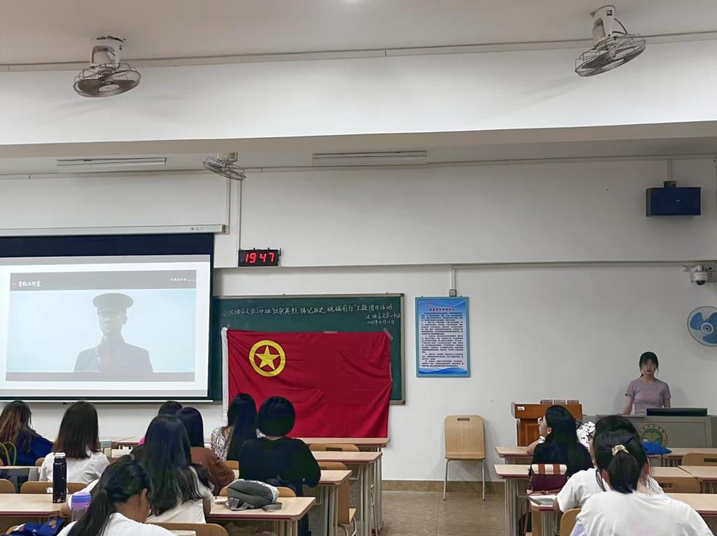 本次活动共分为带领学生回顾历史、介绍革命先烈的事迹、如何弘扬革命先烈的精神三大部分。活动上,廖洋洋首先向学生讲解了邱少云、徐向前等革命先烈的光荣事迹,让学生了解更多为祖国和民族的解放抛头颅、洒热血的英雄事迹,学习英烈们的崇高精神,加深学生对伟大祖国的热爱。接着,廖洋洋呼吁学生积极参观烈士纪念馆,前往革命烈士纪念碑等地祭奠英烈,感悟烈士崇高精神。廖洋洋通过播放革命先烈的英勇事迹的视频,缅怀先烈,激发学生对革命先烈的崇敬之情和继承发扬革命先烈精神的坚定决心。最后,廖洋洋带领学生认真学习英雄烈士的先进事迹,传承红色基因,她鼓励学生要努力学习科学文化知识,发奋图强,为祖国的建设贡献青春力量。