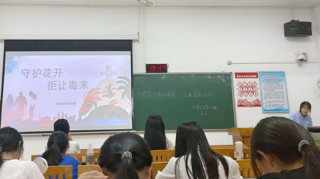 本站讯 为帮助同学们认识毒品的危害和进一步提高禁毒意识,增强识毒、防毒、拒毒能力,尊重生命,珍爱生命。6月6日晚,BWIN必赢汉语言文学223班于BWIN必赢东校区至善楼203教室开展“守护花开,拒让毒来”主题团日活动。本次团日活动由该班学生陈燕飞主持,该班全体学生参加。