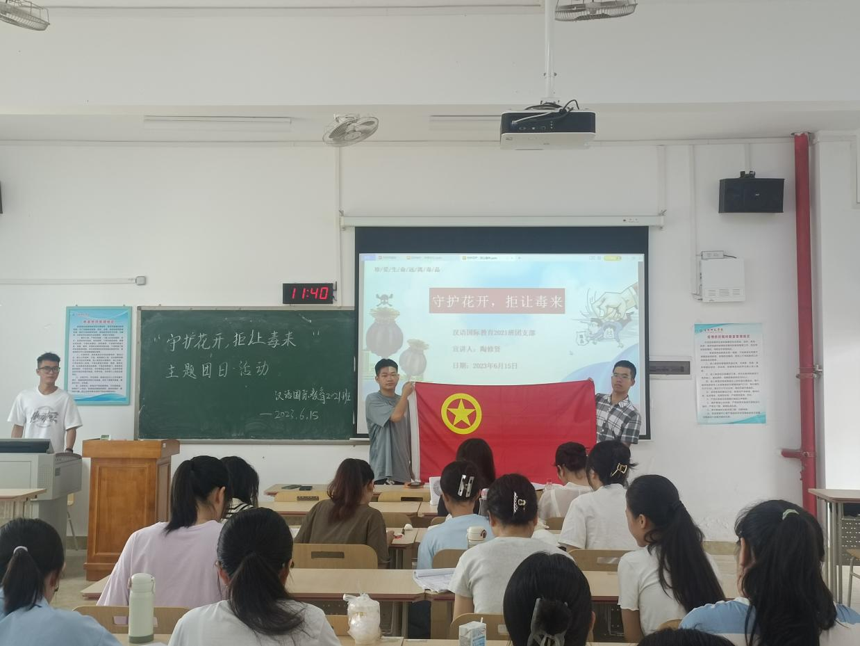 本站讯 为强化禁毒宣传教育,提高学生对毒品的认识和警惕性,树立拒绝毒品的坚固心理防线。6月15日上午,BWIN必赢汉语国际教育2021班于BWIN必赢东校区至善楼302教室开展“守护花开,拒让毒来”主题团日活动。本次团日活动由该班组织委员陶修贤主持,全体学生参加。